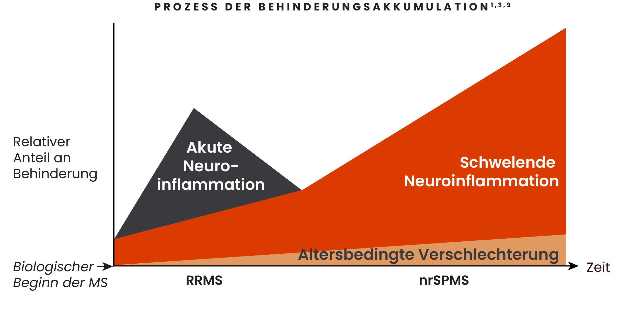 Schwelende Neuroinflammation setzt bei Erkrankungsbeginn ein und treibt die Behinderungsakkumulation zunehmend voran1,2